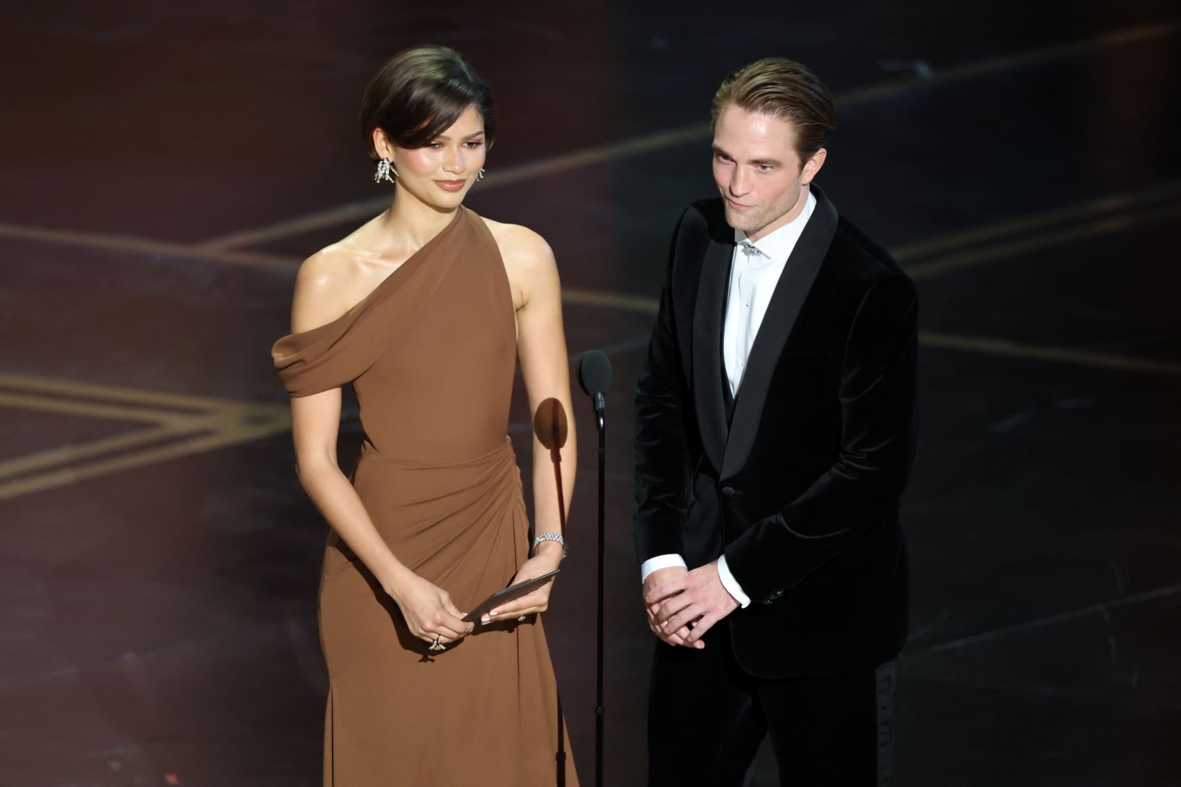 Σε μια περίοδο έντονης φημολογίας για την προσωπική της ζωή, η Zendaya απέφυγε να περπατήσει στο κόκκινο χαλί του Dolby Theatre. Ωστόσο έκλεψε τις εντυπώσεις όταν ανέβηκε στη σκηνή μαζί με τον Πάτινσον για να απονείμουν το Όσκαρ Σκηνοθεσίας στον Πολ Τόμας ‘Αντερσον (Paul Thomas Anderson) για την ταινία «One Battle After Another».