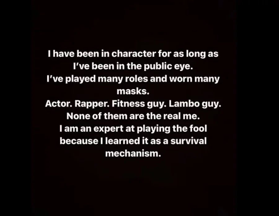 «Υποδύομαι κάποιον χαρακτήρα όσο καιρό βρίσκομαι στη δημοσιότητα» ξεκινά την ανάρτησή του ο Τσετ Χανκς. «Έχω παίξει πολλούς ρόλους και έχω φορέσει πολλές μάσκες. Ηθοποιός. Ράπερ. Γυμναστής. Κανένας από αυτούς δεν είναι ο πραγματικός μου εαυτός».