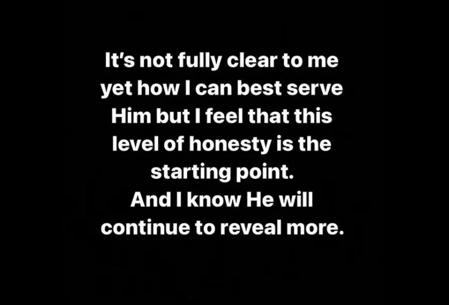 Κλείνοντας, παραδέχεται πως δεν είναι σίγουρος για το πώς να υπηρετήσει καλύτερα τον Θεό, αλλά πιστεύει πως ο Θεός θα τον οδηγήσει προς τη σωστή κατεύθυνση. «Δεν μου είναι ακόμη πλήρως ξεκάθαρο πώς μπορώ να Τον υπηρετήσω καλύτερα, αλλά νιώθω ότι αυτό το επίπεδο ειλικρίνειας είναι ένα σημείο εκκίνησης. Και ξέρω ότι Εκείνος θα συνεχίσει να αποκαλύπτει περισσότερα». Παράλληλα, ενθάρρυνε τους 530.000 ακολούθους του να ξεκινήσουν το δικό τους πνευματικό ταξίδι, αποδεχόμενοι τον Θεό στην καρδιά τους. Έκτοτε, διέγραψε τις αναρτήσεις του.