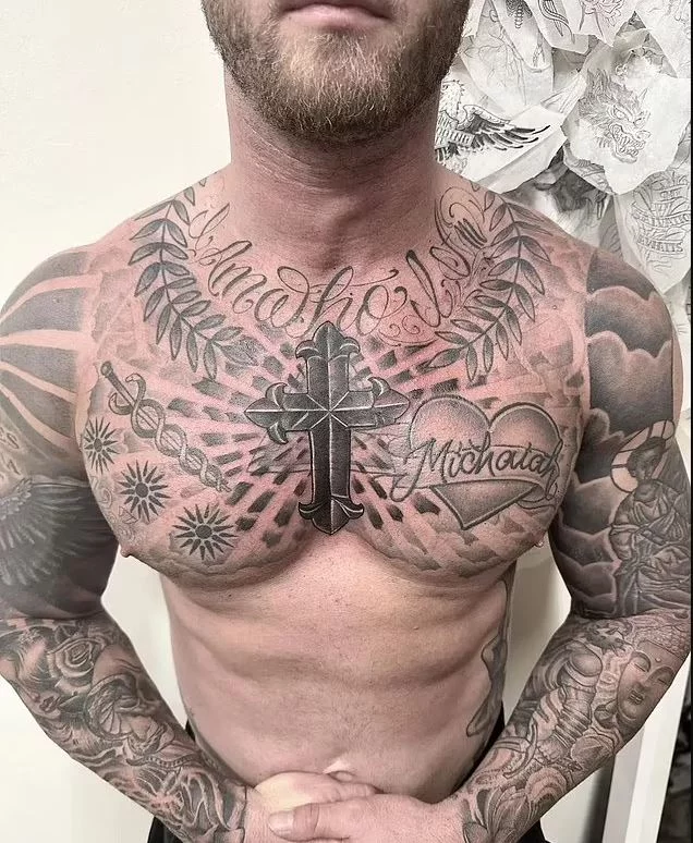 Το τεράστιο τατουάζ σταυρού στο στήθος του παρουσίασε ο γιος του Τομ Χανκς και της Ρίτα Γουίλσον, Τσετ Χανκς, το οποίο έκανε ως μια πράξη αφοσίωσης στο Θεό.