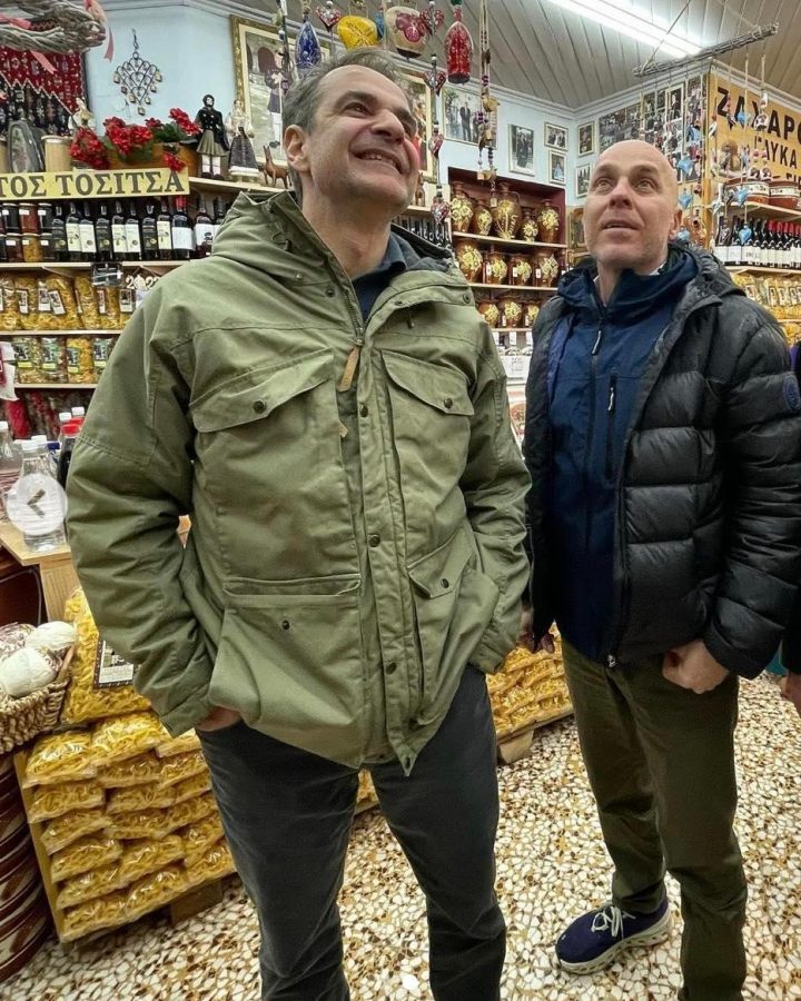 «Με τον Κυριάκο Μητσοτάκη στο Μέτσοβο, του προσέφερα ένα παλαιωμένο τσίπουρο εξαιρετικής ποιότητας από τη φημισμένη για τα κρασιά της Ζίτσα, εκεί άλλωστε είναι το χωριό μου!», έγραψε στη λεζάντα της ανάρτησης ο Γιώργος Αμυράς.