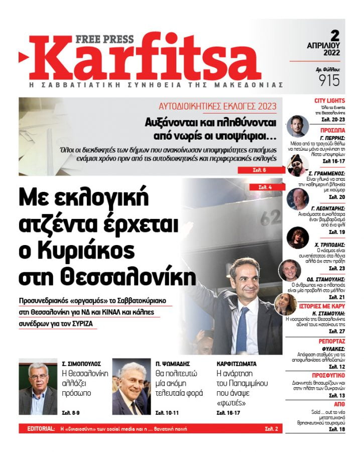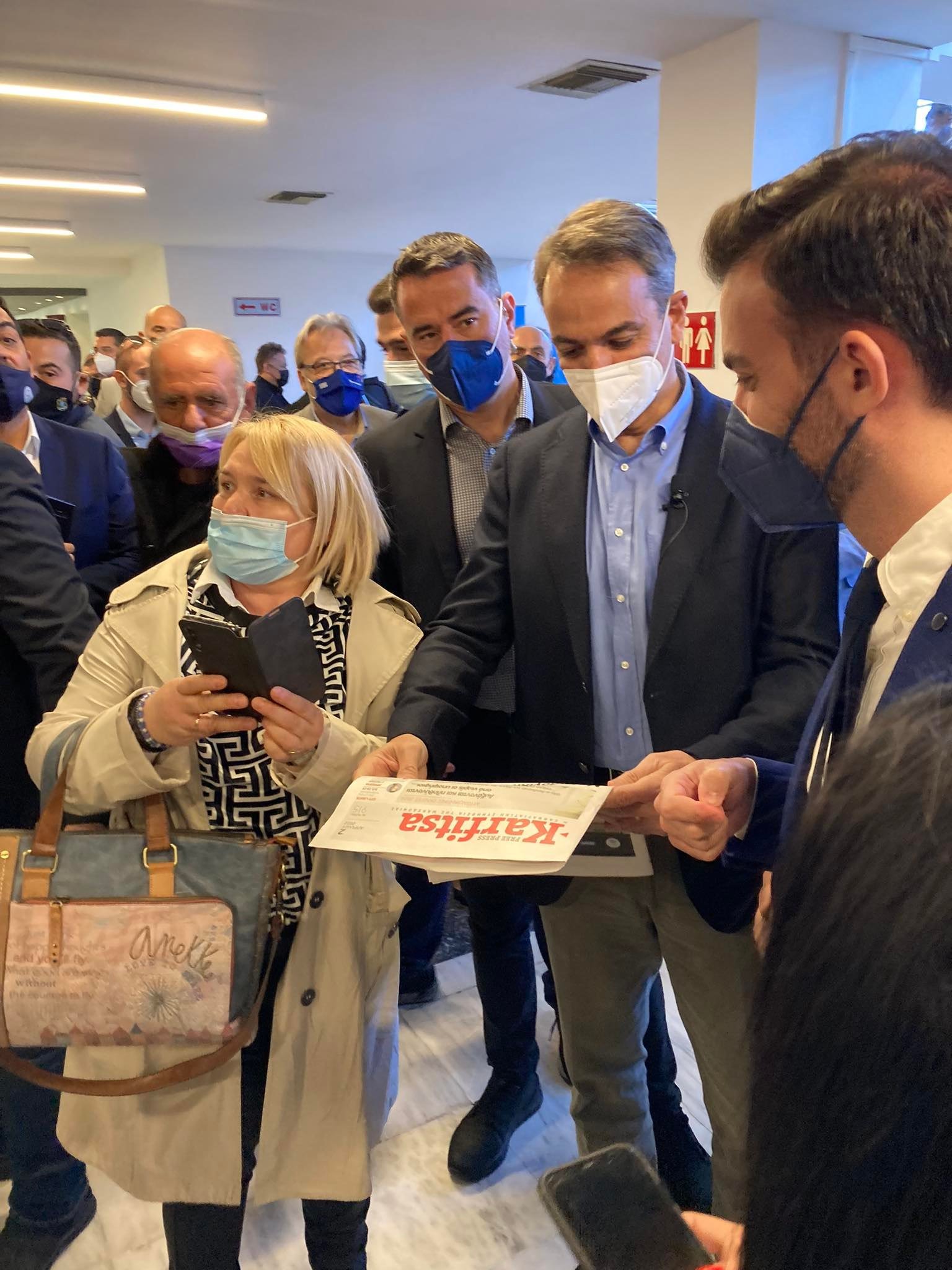 Μόλις ο πρωθυπουργός Κυριάκος Μητσοτάκης έφτασε σήμερα το πρωί στο Βελλίδειο Συνεδριακό Κέντρο, πήρε στα χέρια του την free press Karfitsa.