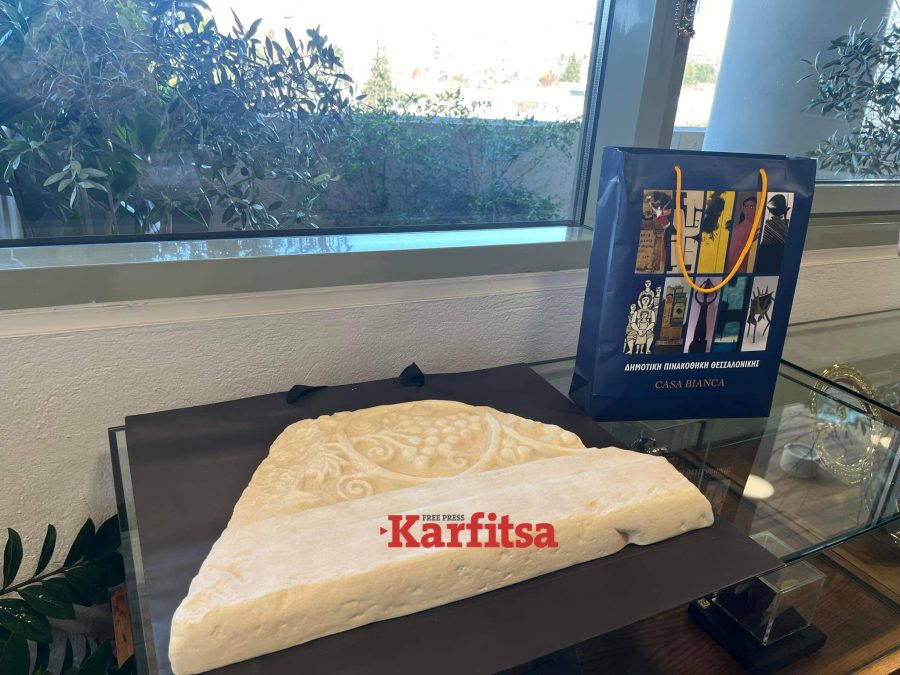 Ειδικότερα, ο δήμαρχος έκανε δώρο στην υπουργό ένα τμήμα ανάγλυφου θυρώματος από το ναό Αχειροποιήτου Θεσσαλονίκης.