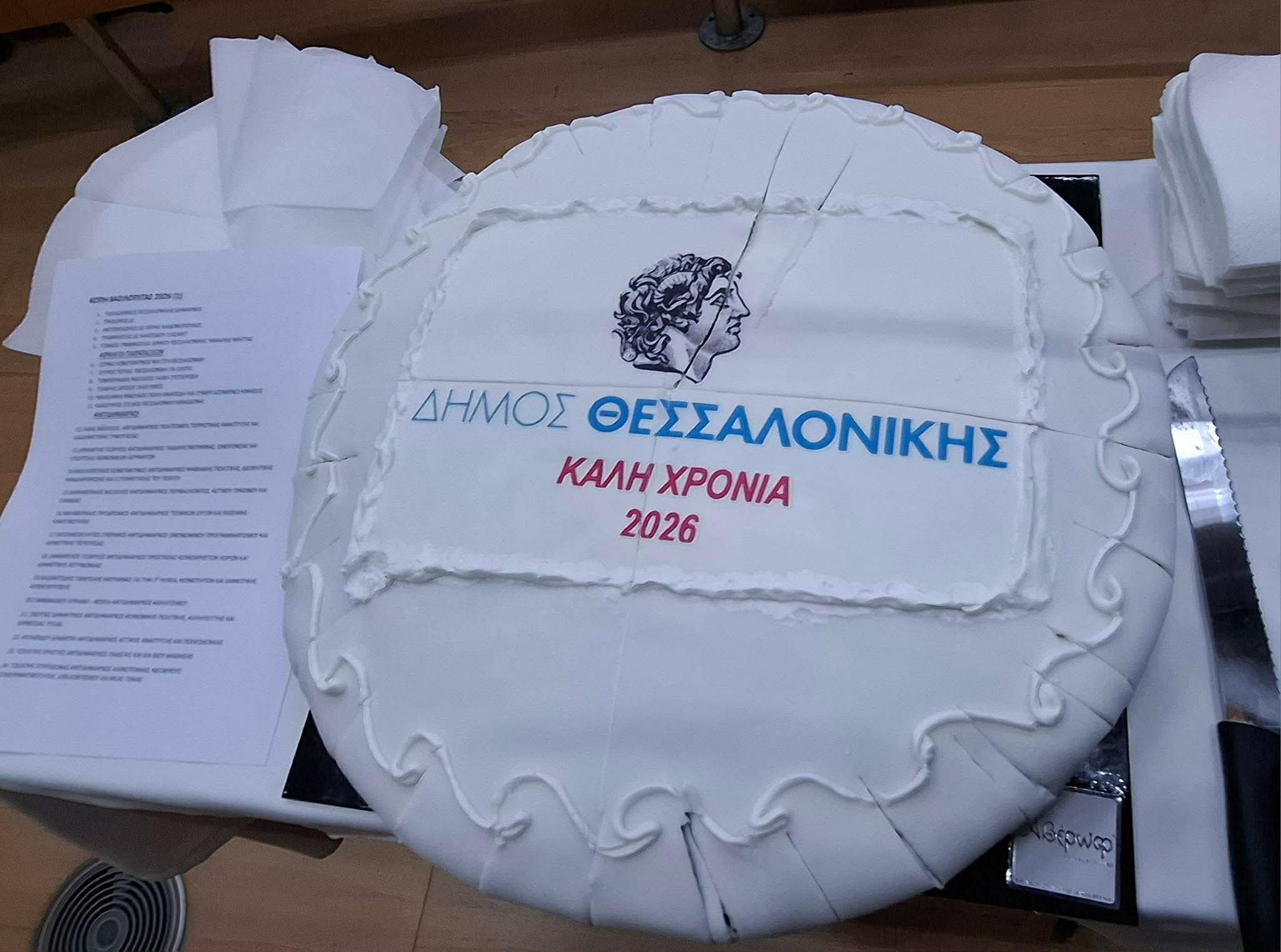Το πρώτο κομμάτι που κόπηκε από την πρωτοχρονιάτικη βασιλόπιτα ήταν για τη Θεσσαλονίκη και το παρέλαβε από τα χέρια του Σπύρου Βούγια ο δήμαρχος, Στέλιος Αγγελούδης. Το δημοτικό συμβούλιο έκοψε την πίτα του με τον κ.Αγγελούδη να εύχεται σε όλους υγεία. «Να είμαστε γεροί για την πόλη μας», είπε χαρακτηριστικά. Μάλιστα, σε μια συμβολική κίνηση παρέδωσε το κομμάτι στους προέδρους των κοινοτήτων. Άλλωστε, για τον ίδιο προτεραιότητα έχουν οι γειτονιές, οι οποίες πρέπει να αλλάξουν όψη με έργα ουσίας, κάτι που συνηθίζει να τονίζει.