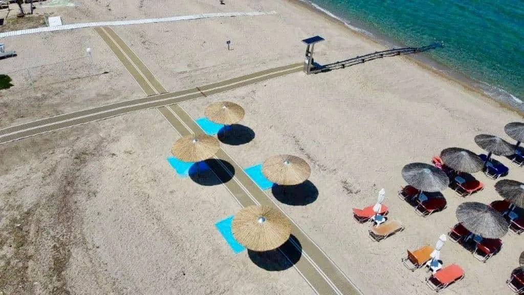 Διάταξη αυτόνομης καθοδήγησης, πλωτά αμφίβια αμαξίδια, φορητοί διάδρομοι πρόσβασης στην παραλία, ομπρέλες σκίασης, κινητοί χώροι υγιεινής και αποδυτηρίων, κινητά πάνελ σκίασης, ειδικοί κάδοι απορριμμάτων και ειδικές πληροφοριακές πινακίδες θα τοποθετηθούν στις παραλίες: