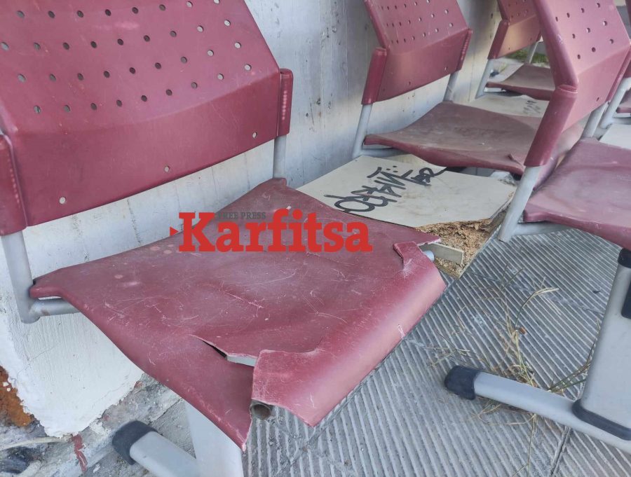 Σπασμένα και πολυκαιρισμένα καθίσματα, σε ένα εκ των οποίων μάλιστα στάζει νερό από τα κλιματιστικά, μουτζούρες δεξιά και αριστερά και σκουπίδια στην είσοδο και στο παρτέρι μπροστά από το κτίριο το οποίο είναι αφημένο στην τύχη του αντί να είναι γεμάτο λουλούδια και να ομορφαίνει την όψη.