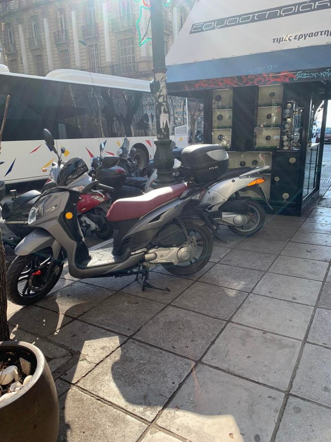 Όπου και αν γυρίσεις το βλέμμα σου στο κέντρο της Θεσσαλονίκης θα δεις δίκυκλα που έχουν σταθμεύσει πάνω στα πεζοδρόμια. Κάποιος θα πει ότι εφόσον είναι μεγάλο το πεζοδρόμια και χωράνε και οι πεζοί να κυκλοφορήσουν και τα δίκυκλα να παρκάρουν που είναι το πρόβλημα; Δεν είναι όμως έτσι και η Δημοτική Αστυνομία εφόσον υπάρχει οφείλει να δώσει λύση. Όπως επίσης ο Δήμος να φτιάξει πάρκινγκ για δίκυκλα.