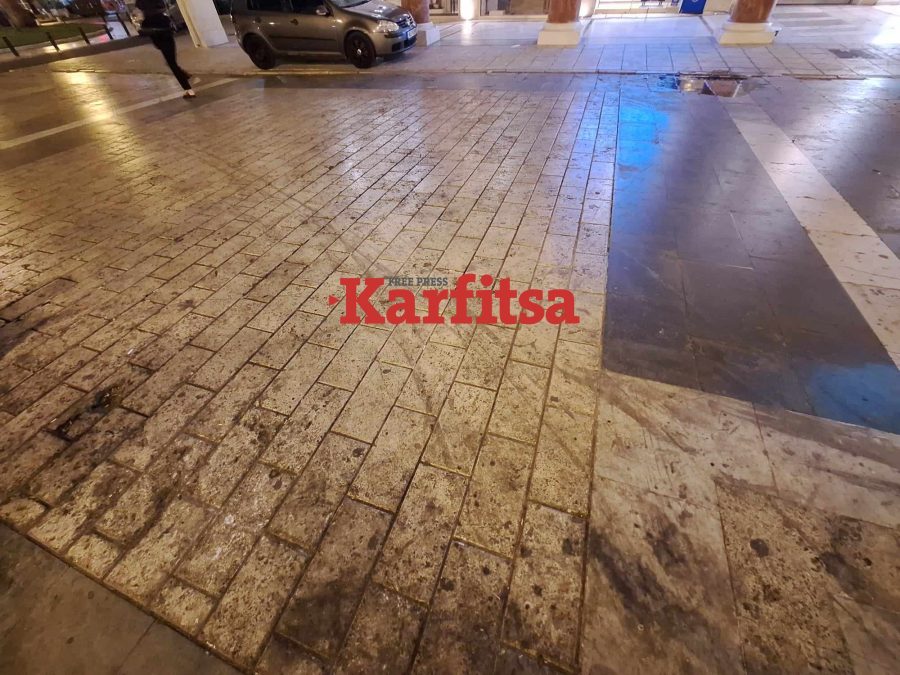 Το πεζοδρόμιο της πιο πολυσύχναστης πλατείας της Θεσσαλονίκης είναι γεμάτο μαύρα σημάδια από τις ρόδες μηχανών αλλά και τα σκουπίδια και τη σκόνη.