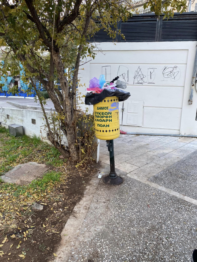 Το πάρκο Αφαλή έχει γεμίσει με διάσπαρτα σκουπίδια. Παρότι υπάρχουν κάδοι απορριμμάτων φαίνεται πως δεν είναι αρκετοί, καθώς ακόμη και αυτοί έχουν ξεχειλίσει από σκουπίδια.