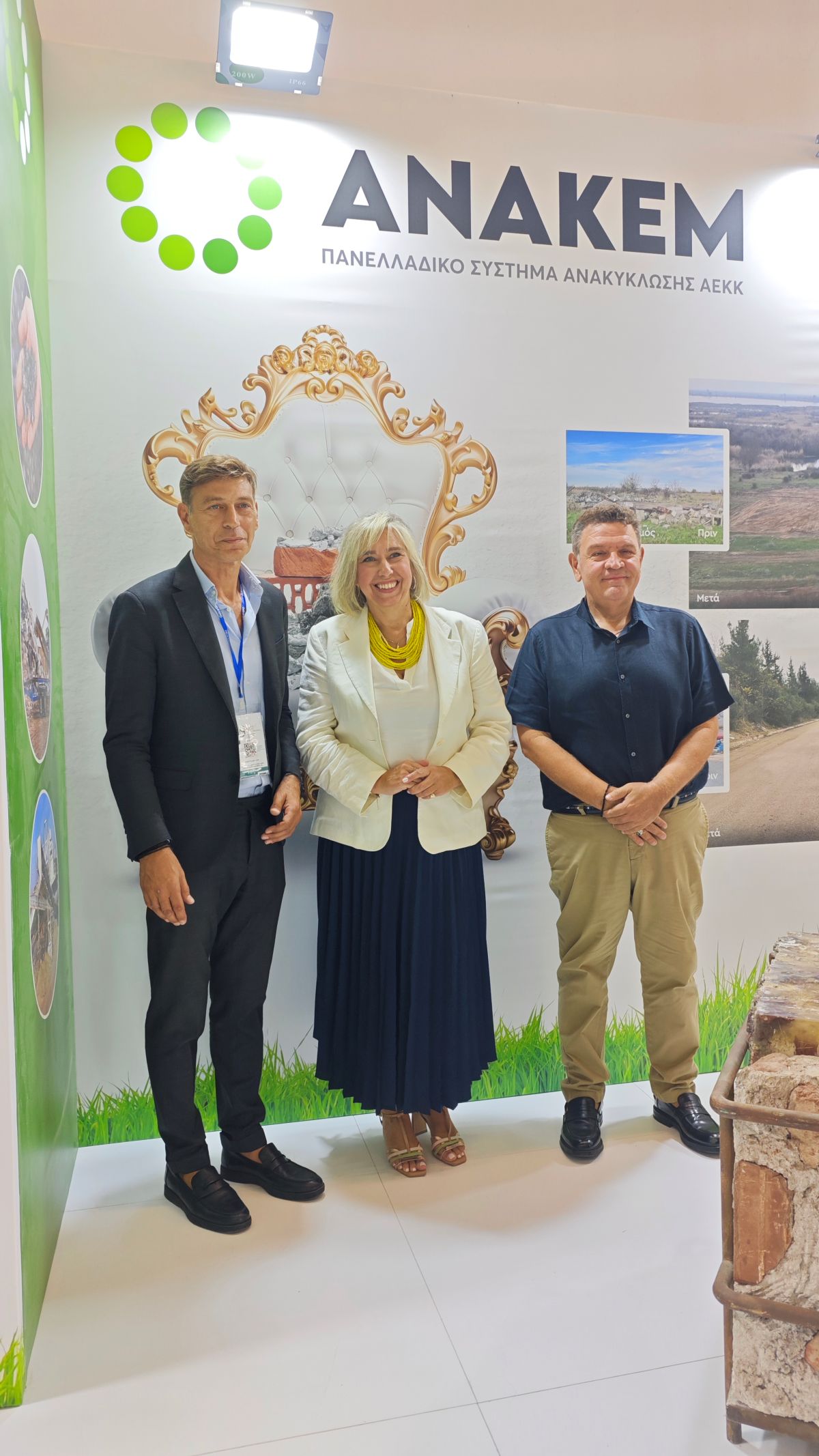 Το περίπτερο της ΑΝΑΚΕΜ επισκέφθηκαν εκπρόσωποι της κυβέρνησης, της αυτοδιοίκησης, θεσμικών φορέων και της αγοράς, καθώς και πολλοί πολίτες που ενημερώθηκαν για τη διαδικασία ανακύκλωσης μπαζών και τις καταστροφικές συνέπειες της παράνομης απόρριψης στο περιβάλλον.