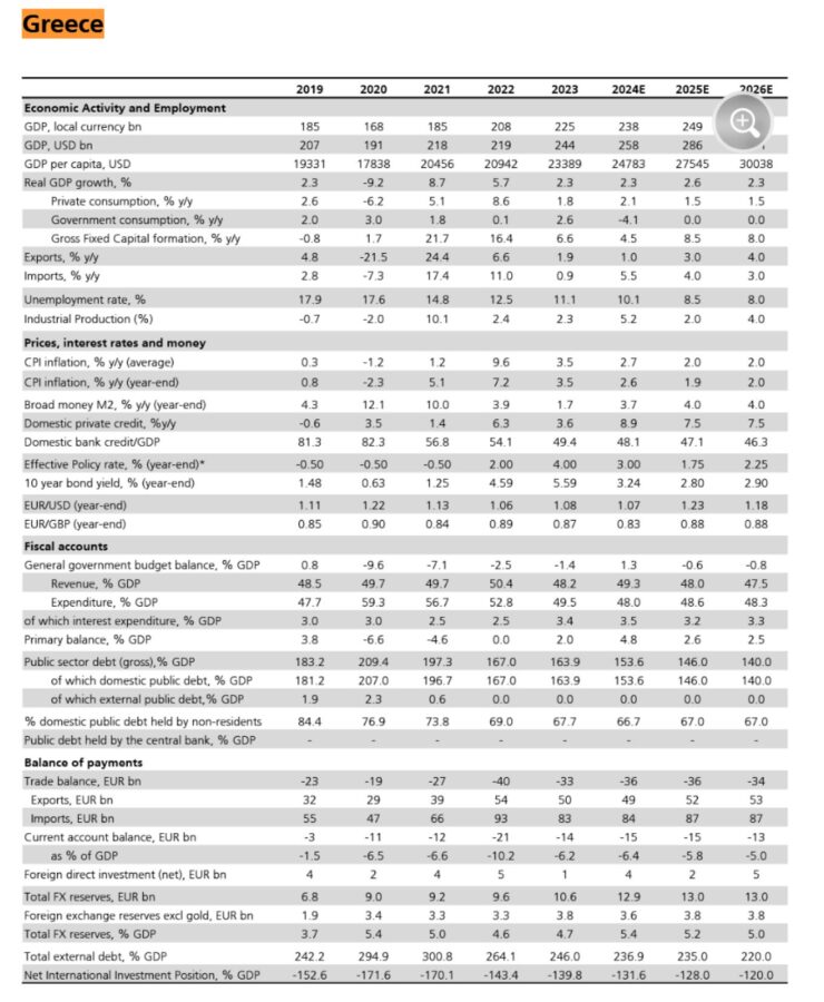 Ιδιαίτερη σημασία δίνεται στη συνεχιζόμενη αποκλιμάκωση του λόγου χρέους/ΑΕΠ, ο οποίος πλέον προσεγγίζει τα επίπεδα του 2011, ενώ η ανεργία βρίσκεται στο χαμηλότερο σημείο της τελευταίας δεκαετίας. Η UBS χαρακτηρίζει τα δύο αυτά στοιχεία ως κρίσιμα για τη βιωσιμότητα της ανάπτυξης, καθώς ενισχύουν την εσωτερική ζήτηση, σταθεροποιούν τα δημοσιονομικά και δημιουργούν περιθώρια κοινωνικών παρεμβάσεων.