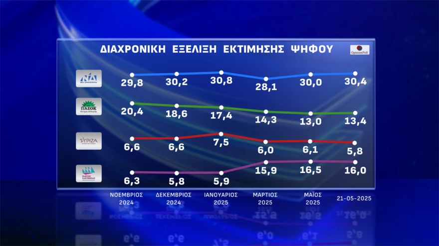 Η εξέλιξη αυτή επιβεβαιώνει τη σταθερή εμπιστοσύνη του κόσμου στη μετριοπάθεια και τη σοβαρότητα που εκπέμπει η κυβερνητική παράταξη, την ώρα που οι πολιτικοί της αντίπαλοι είτε βρίσκονται σε φάση στασιμότητας είτε καταγράφουν υποχώρηση. Ενδεικτική είναι η πτώση της Πλεύσης Ελευθερίας στο 16%, έναντι 16,5% στην προηγούμενη μέτρηση, γεγονός που θέτει ερωτήματα για τη βιωσιμότητα του αντισυστημικού αφηγήματος που πρόβαλε μεταμνημονιακά η Ζωή Κωνσταντοπούλου.