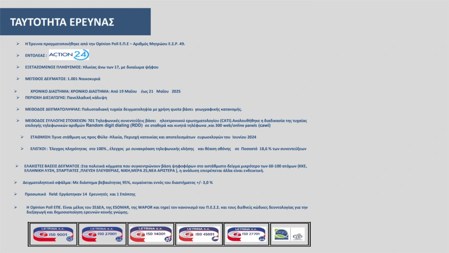 Η εικόνα της έρευνας συνολικά δείχνει ότι η Νέα Δημοκρατία ανακτά σταδιακά την πρωτοβουλία των κινήσεων, ενώ η Αντιπολίτευση εγκλωβίζεται σε ρητορικές υπερβολές. Η μετρημένη διαχείριση των ευρημάτων του πορίσματος Καρώνη, η γραμμή θεσμικής σοβαρότητας και η αποφυγή πόλωσης φαίνεται να λειτουργούν υπέρ της κυβέρνησης, ακόμα και σε ένα τόσο δύσκολο ζήτημα.