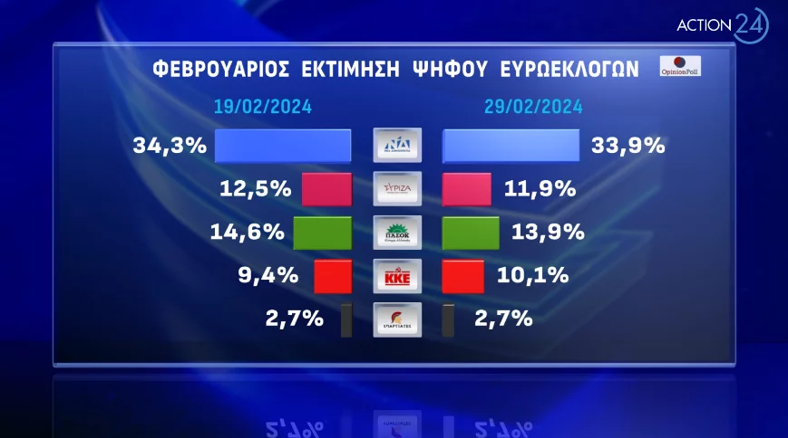 Opinion Poll: Στο 33,9% η ΝΔ στο 13,9% το ΠΑΣΟΚ, 11,9% ο ΣΥΡΙΖΑ