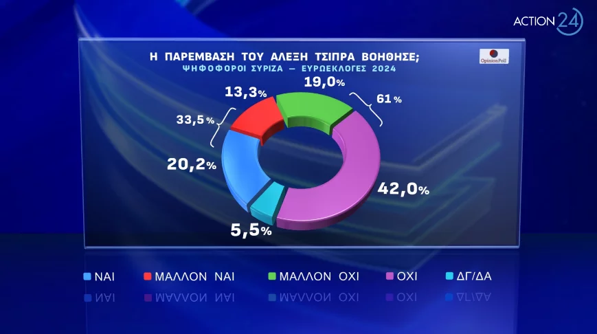 Αλλά και η πλειοψηφία των ψηφορόρων του ΣΥΡΙΖΑ, σε ποσοστό 42% απαντά πως δεν βοήθησε η παρέμβαση του πρώην πρωθυπουργού.