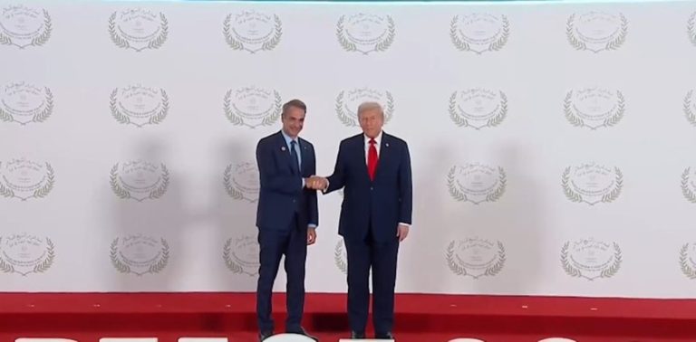 Η θερμή χειραψία Τραμπ και Μητσοτάκη στη Σύνοδο για τη συμφωνία ειρήνης Ισραήλ – Χαμάς (Video)