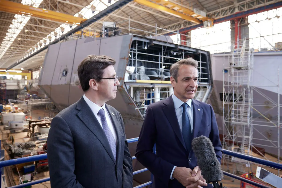 Κατά τη διάρκεια της επίσκεψής του, ο πρωθυπουργός επιβιβάστηκε στη φρεγάτα «Κίμων», η οποία βρίσκεται σε προχωρημένο στάδιο ναυπήγησης, και ξεναγήθηκε στις δεξαμενές ναυπήγησης των φρεγατών «Νέαρχος» και «Φορμίων», οι οποίες αναμένεται να παραδοθούν περί τα τέλη του 2025 και το 2026 αντίστοιχα.