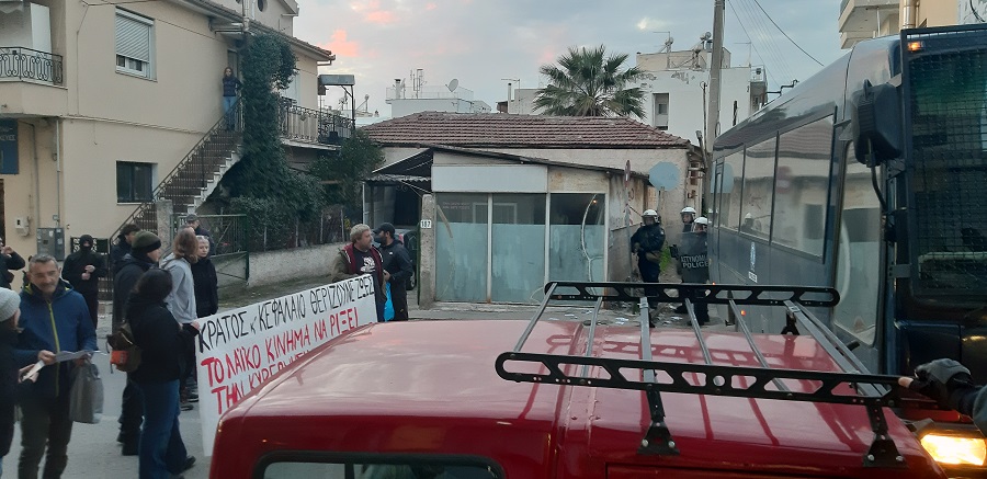 Τα μέλη των συλλογικοτήτων έκαναν πορεία προς την κατεύθυνση του Περιφερειακού και προσπάθησαν να προσεγγίσουν το πολιτικό γραφείο του Χρ. Τριαντόπουλου, ωστόσο βρέθηκαν μπροστά σε αστυνομικές κλούβες. Οπισθοχώρησαν και προσπάθησαν να προσεγγίσουν από παρακείμενα στενά, ωστόσο τον δρόμο τους διέκοψαν οι παρατεταμένοι αστυνομικοί.