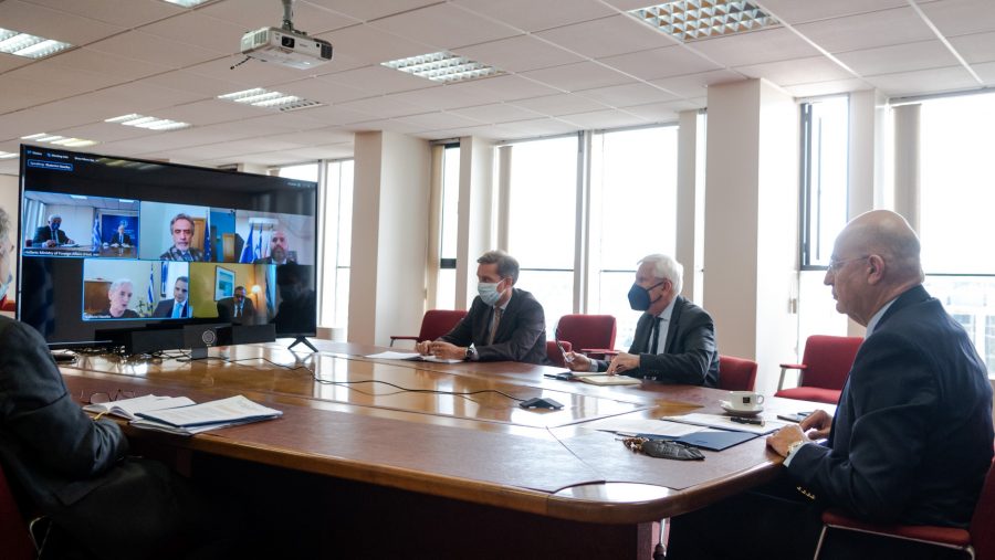 Τηλεδιάσκεψη με την πρέσβη της Ελλάδας στη Μόσχα και τους γενικούς προξένους σε Μόσχα, Αγία Πετρούπολη και Νοβοροσσίσκ είχε, νωρίτερα σήμερα, ο υπουργός Εξωτερικών, Νίκος Δένδιας.