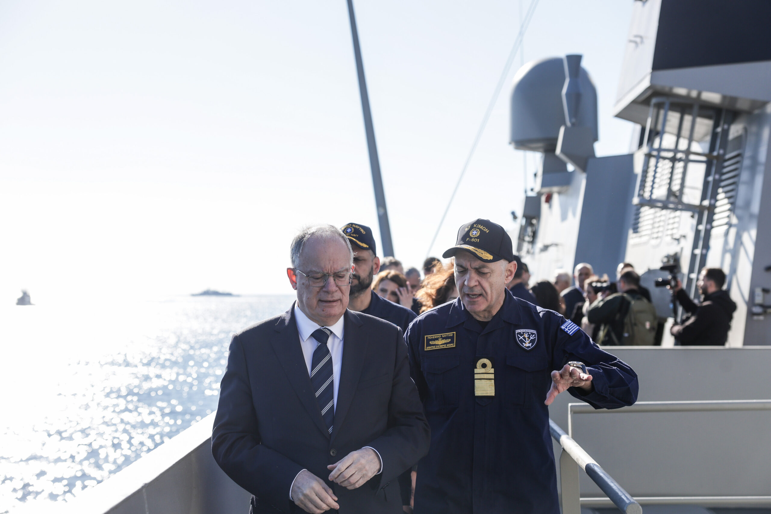 Ο Πρόεδρος της Δημοκρατίας, Κωνσταντίνος Τασούλας, παρέστη στην εν πλω τελετή υποδοχής της φρεγάτας «ΚΙΜΩΝ», παρουσία του πρωθυπουργού, Κυριάκου Μητσοτάκη, του υπουργού Εθνικής Άμυνας, Νίκου Δένδια και του υφυπουργού Εθνικής Άμυνας, Θανάση Δαβάκη.