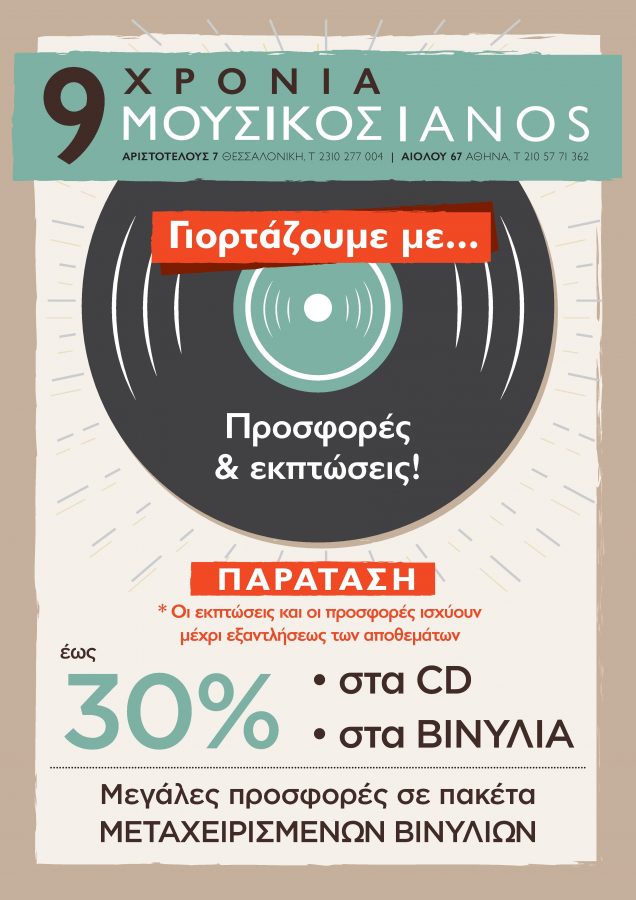 Ο Μουσικός IANOS, το σημείο συνάντησης των μουσικόφιλων σε Αθήνα & Θεσσαλονίκη, γιορτάζει τα 9 χρόνια παρουσίας του με μοναδικές προσφορές και εκπτώσεις!
