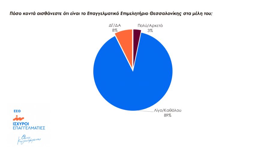 Ενώ σε ερώτηση «πόσο κοντά αισθάνεστε στο ΕΕΘ», το 89% απάντησε λίγο/καθόλου και μόλις το 3% απάντησε πολύ/αρκετά. Αναφορικά με τα προσόντα του επόμενου προέδρου του ΕΕΘ, τα μέλη του επιμελητηρίου απάντησαν πρώτα ότι θα πρέπει να είναι γνώστης της αγοράς, έπειτα ότι θα πρέπει να είναι αποτελεσματικός, τίμιος και διεκδικητικός, ενώ λιγότεροι απάντησαν ότι θα πρέπει να έχει εμπειρία στη διοίκηση του επιμελητηρίου.