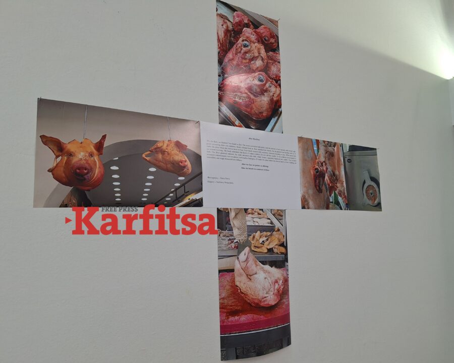 «Ο τίτλος Define Brutal εμπεριέχει πολλές ερμηνείες. Η δική μας αφορά στο πιο βίαιο κομμάτι. Είναι ζώα αυτά που εμφανίζονται στις φωτογραφίες αλλά μπορεί να διευρυνθεί και στο ανθρώπινο επίπεδο. Η ιδέα του κειμένου είναι ότι πίσω από αυτό το “χαμόγελο” εμπεριέχεται μια τελετουργία, η οποία δεν έχει να κάνει μόνο με τη βία πάνω στα ζώα. Έχει και κάποιο πνευματικό στοιχείο. Οφείλει να σοκάρει γιατί πρόκειται για κάτι πολύ πρωτόγονο. Έχουμε αποκτήσει ένα είδος μιθριδατισμού στη βία. Οι φωτογραφίες και το κείμενο το ξεπερνούν αυτό και μπορεί ο θεατής να βιώσει λίγο πιο διευρυμένα συναισθήματα. Δεν έχει σημασία αν κάποιος είναι vegan ή όχι. Περικλείει όλες τις ομάδες των ανθρώπων», τονίζει από την πλευρά του ο κ. Μπαμπάσης, μιλώντας στην Karfitsa.