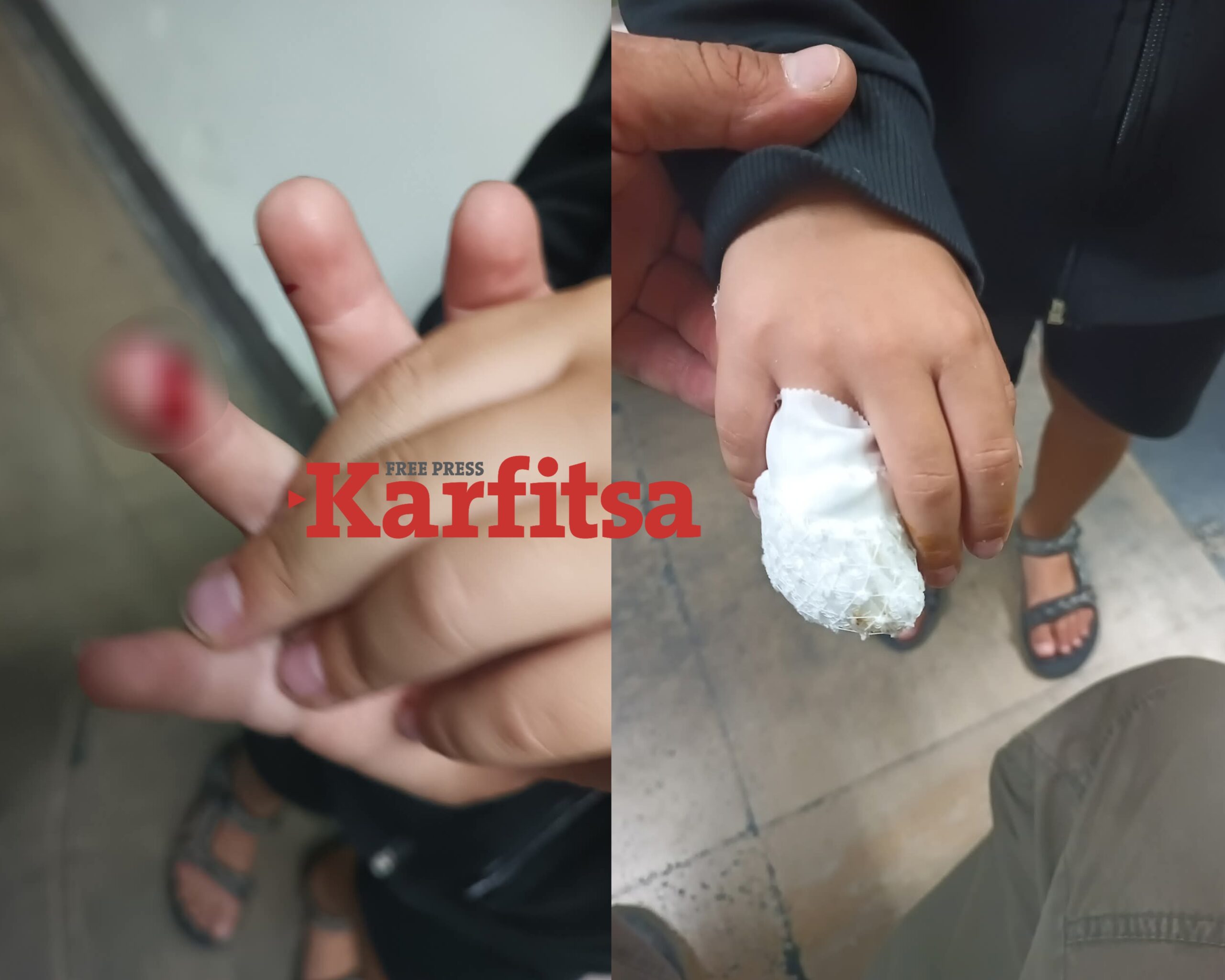 Και πρόσθεσε: «Πήγαμε στο νοσοκομείο για ακτίνες. Το παιδί δε σταματούσε να κλαίει. Ο πόνος ήταν πολύ έντονος και θεωρήσαμε ότι ίσως είχε σπάσει το δάχτυλό του. Είδαμε τελικά ότι κόπηκε στο δέρμα. Περιποιήθηκαν το τραύμα και απλά έπρεπε κάθε δύο με τρεις μέρες να πηγαίνουμε στο νοσοκομείο και να αλλάζουμε τις γάζες, μέχρι να επουλωθεί επαρκώς».