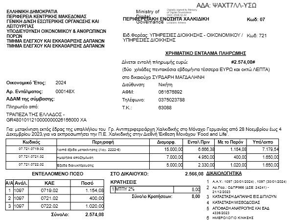 Πίσω στα πεπραγμένα της περιφέρειας, οι δραστηριότητες της Μάγδας Συρδάρη δεν σταματούν στις αναθέσεις προς την οικογένειά της, αλλά επεκτείνονται και σε άλλους τομείς. Είναι τοποθετημένη στο γραφείο αντιπεριφερειάρχη, αλλά αναλαμβάνει και έργο στην τεχνική υπηρεσία όπου διευθυντής είναι ο Άκης Μιγδάνης, επίσης στην πολιτική προστασία, αλλά αναλαμβάνει και διεθνείς εκθέσεις του εξωτερικού, όπου μετέχουν ελληνικές επιχειρήσεις! Τον περασμένο Δεκέμβριο, η ίδια εστάλη από τους προϊσταμένους της, ως ειδική (;) να συντονίσει την οργάνωση και να εκπροσωπήσει την Περιφέρεια Κεντρικής Μακεδονίας σε διεθνή έκθεση τροφίμων στο Μόναχο. Εκτός από τα εκτός έδρας που εισέπραξε λόγω της μετακίνησης στο εξωτερικό, το εκπληκτικό ήταν ότι μια εκ των δυο «ειδικών» υπαλλήλων της περιφέρειας που εστάλησαν στην διεθνή έκθεση, ήταν η Μάγδα Συρδάρη και η άλλη, η καθ’ ύλην διευθύντρια της περιφέρειας υπεύθυνη για τα τρόφιμα! Και οι συμμετέχουσες εταιρίες τροφίμων που συμμετείχαν στην έκθεση για την Περιφέρεια Κεντρικής Μακεδονίας ήταν μόλις 9! Δηλαδή, από τις δυο ειδικούς υπαλλήλους της περιφέρειας, η μια ήταν πραγματικά στον τομέα της δουλειάς της και η άλλη απλώς… η εκλεκτή Μάγδα! Η Μάγδα, είναι παντού ακόμη και σε μετακινήσεις στο εξωτερικό, ως ειδικός τροφίμων! Η πτυχιούχος ΤΕΙ μηχανολογίας της τεχνικής υπηρεσίας της περιφερειακής ενότητας Χαλκιδικής, ειδικός τροφίμων στο Μόναχο και διοργανώτρια διεθνών εκθέσεων! Μα τελικά, σε πόσα αντικείμενα απασχολείται;