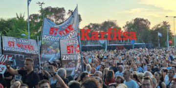 Έντονες αποδοκιμασίες έξω από τη ΔΕΘ, από διαδηλωτές που φωνάζουν «Είστε δολοφόνοι», πριν από την ομιλία του πρωθυπουργού, Κυριάκου Μητσοτάκη, στο Βελλίδειο. Ρεπορτάζ: Ελίνα Τουκουσμπαλίδου Συγγενείς των θυμάτων των Τεμπών βρέθηκαν στην πλατεία της ΧΑΝΘ από νωρίς, με πανό. Στο σημείο βρίσκονται και κτηνοτρόφοι, με την κατάσταση να είναι ιδιαίτερα έκρυθμη. Η Δέσποινα Γκανίδου, μητέρα … Συνεχίστε να διαβάζετε το «Είστε δολοφόνοι» – Έντονες αποδοκιμασίες έξω από τη ΔΕΘ στη συγκέντρωση για τα Τέμπη (ΦΩΤΟ+Video).