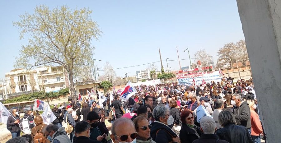 Η πορεία των ΣΕΤΕΠΕ, ΠΑΜΕ συνεχίστηκε και έφτασε στην πύλη 11 στο λιμάνι Θεσσαλονίκης.