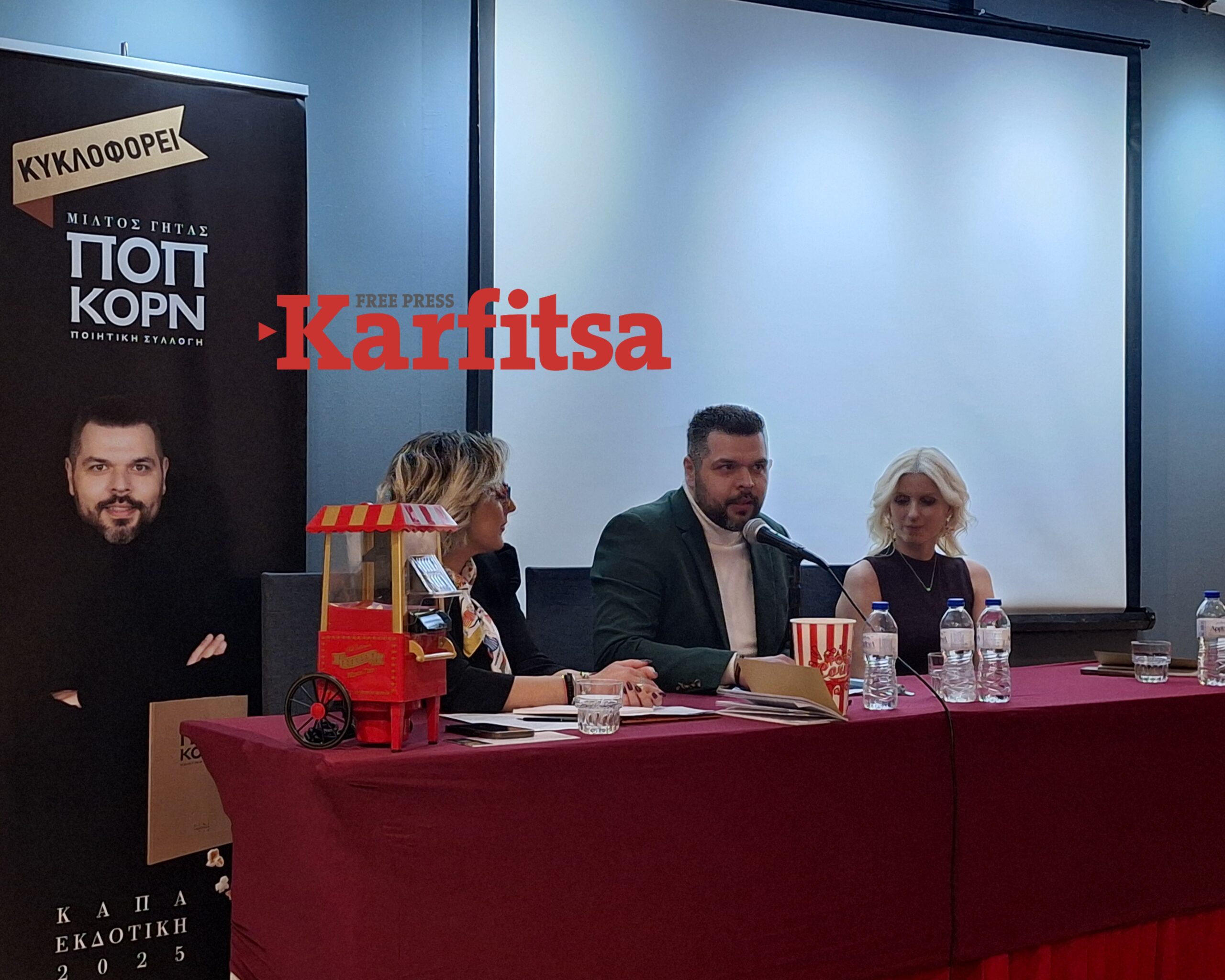 «Το Ποπ Κορν είναι η ένατη στη σειρά ποιητική μου συλλογή, με 31 καινούρια ποιήματα που γράφτηκαν στην τελευταία τριετία. Είναι ένα “πισωγύρισμα” στα παιδικά και εφηβικά μου χρόνια. Από αυτό ορμώμενος έδωσα τον τίτλο Ποπ Κορν στη νέα μου ποιητική συλλογή. Το ποπ κορν μάς φέρνει στο μυαλό την παιδική και εφηβική ηλικία, μια βόλτα με τον φίλο μας, μια ταινία στο σινεμά. Μέσα διαπραγματεύεται θέματα όπως η απώλεια, ο θάνατος, τα παιδικά όνειρα που κάποια βγαίνουν αληθινά στην πορεία της ζωής και αλλά όχι. Όλο αυτό το κάνω γιατί θέλω να μοιραστώ αλήθειες με τον κόσμο, να κοιταχτούμε ξανά στα μάτια. Την εποχή της τεχνολογίας και της τεχνητής νοημοσύνης λείπει νομίζω πολύ αυτή η επαφή», επεσήμανε ο Μίλτος Γήτας, μιλώντας στην Karfitsa.