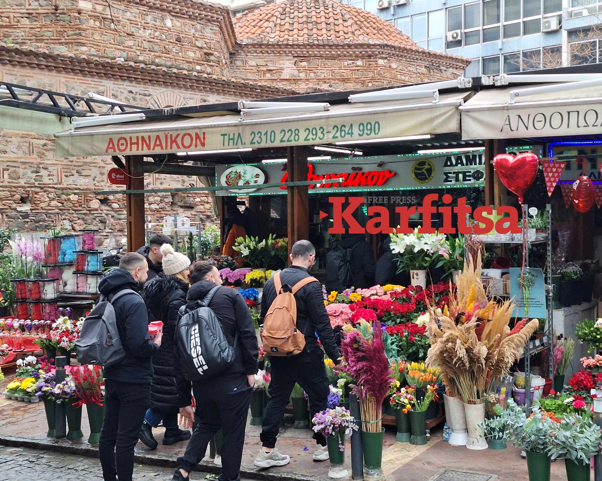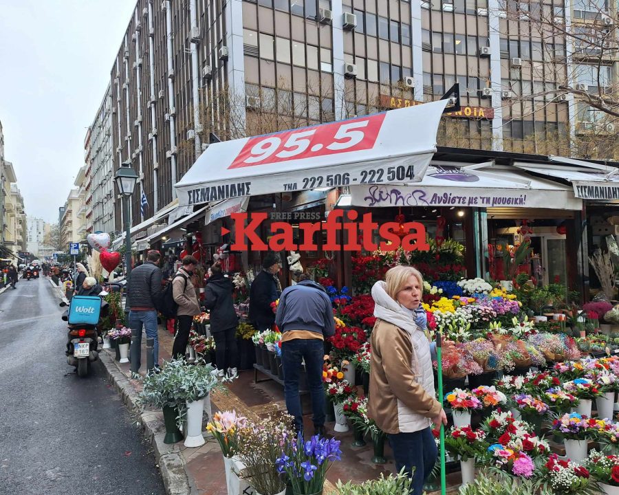 Όπως μπορείτε να δείτε στις εικόνες της Karfitsa από τα Λουλουδάδικα, από νωρίς το πρωί της ημέρας των ερωτευμένων, άτομα όλων των ηλικιών έσπευσαν να αγοράσουν λουλούδια.