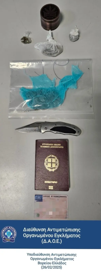 Στα όπλα που βρέθηκαν, συγκαταλέγονται ένα πιστόλι με σφαίρα στη θαλάμη και ένα πιστόλι χωρίς σειριακό αριθμό, με δύο γεμιστήρες που περιείχαν συνολικά 22 σφαίρες. Εκτός από μικρές ποσότητες χασίς, στις κατ’ οίκον έρευνες, οι αστυνομικοί κατάσχεσαν ένα πλαστό διαβατήριο , ένα πλαστό δίπλωμα οδήγησης κι έναν σουγιά.