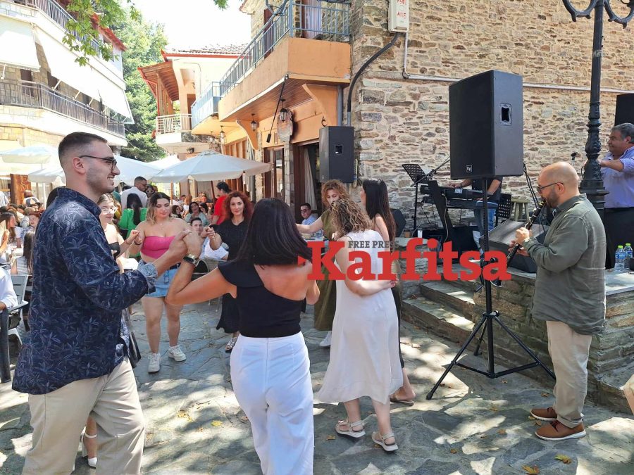 Στην πλατεία από νωρίς στήθηκε γλέντι με μουσική από ζωντανή ορχήστρα, φαγητό και χορό, καθώς πρόκειται για το πιο ξακουστό πανηγύρι της περιοχής. «Το πανηγύρι του δεκαπενταύγουστου στο Λιβάδι είναι όπως όλα τα πανηγύρια στα βλαχοχώρια. Είναι μια περίοδος στην οποία όλοι οι συγχωριανοί έρχονται στα πάτρια εδάφη τους να τιμήσουν τους προγόνους τους, να τιμήσουν το αίμα τους και να προσκυνήσουν την Παναγία για να τους χαρίσει υγεία κι ευτυχία για όλη τη χρονιά. Παράλληλα έρχονται για να ανταμώσουν όλους τους συμμαθητές, τους φίλους και τους συγγενείς τους. Τα γλέντια που γίνονται είναι μεγάλα στην πλατεία, στον πνεύμονα δηλαδή του χωριού», ανέφερε σε δηλώσεις του στην Karfitsa ο αναπληρωτής του δημάρχου Ελασσόνας, αντιδήμαρχος Τεχνικών Έργων, Πολεοδομίας και Προγραμματισμού, Δημήτρης Καρανίκας.