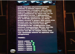 Ο επικεφαλής της ομάδας, ο οποίος χρησιμοποιεί το ψευδώνυμο «Verse», αναφέρει για τις κλωνοποιημένες κάρτες (CCS): «Έχουν μέσα περασμένα στοιχεία από άλλες κάρτες, έχουν μέσα ένα ποσό το οποίο μπορείτε να τραβήξετε εντός 1 εβδομάδας αφού έχετε αγοράσει την κάρτα. Στο ATM θα χρειαστεί να πάτε χωρίς κινητό ή χωρίς SIM μέσα στο κινητό για να αποφύγετε τυχόν εμπλοκές! Τα λεφτά που θα τραβήξετε θα τραβηχτούν από κάποιο λογαριασμό ξένου που θα είναι εκτός Ελλάδας, αλλά τα λεφτά του θα τα πάρει πίσω από την τράπεζα, οπότε το κράτος την πληρώνει».