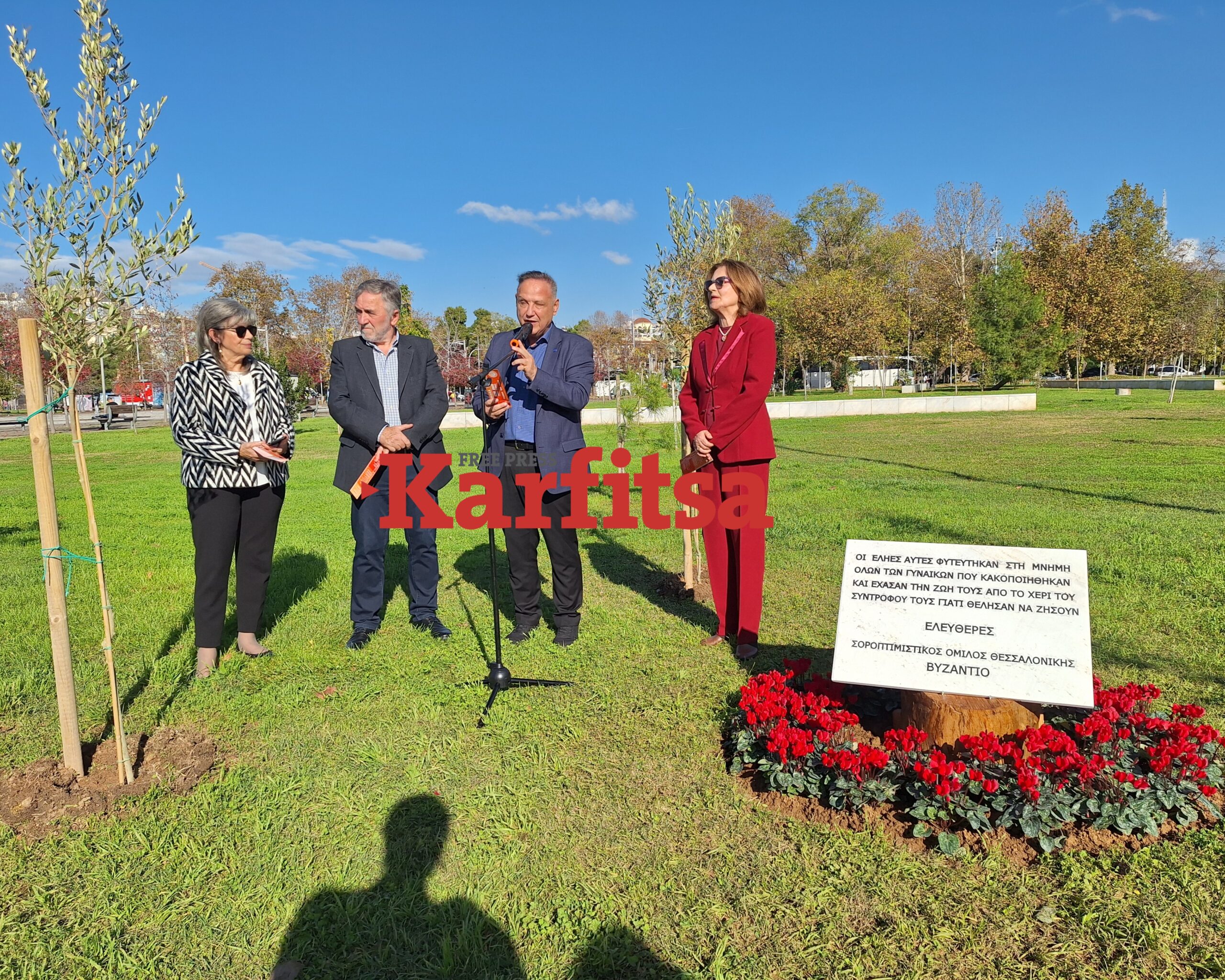 «Οι εληές αυτές φυτεύτηκαν στη μνήμη όλων των γυναικών που κακοποιήθηκαν και έχασαν τη ζωή τους από το χέρι του συντρόφου τους γιατί θέλησαν να ζήσουν». Αυτό είναι το μήνυμα της μαρμάρινης πλακέτας που τοποθετήθηκε το πρωί του Σαββάτου στη Νέα Παραλία Θεσσαλονίκης, προς τιμήν όλων των θυμάτων γυναικοκτονιών και όλων των γυναικών που υπέστησαν κακοποίηση από το σύντροφό τους.