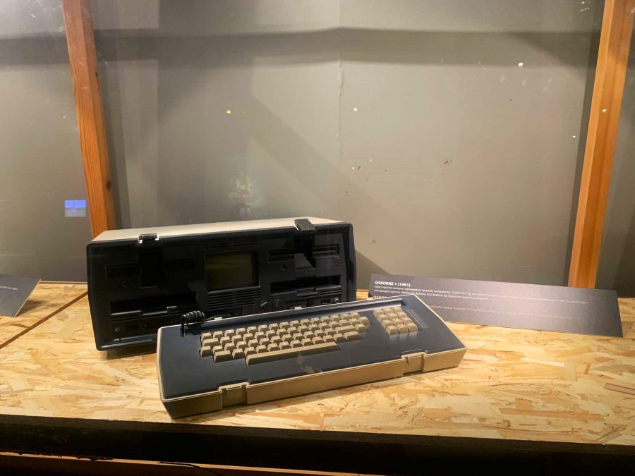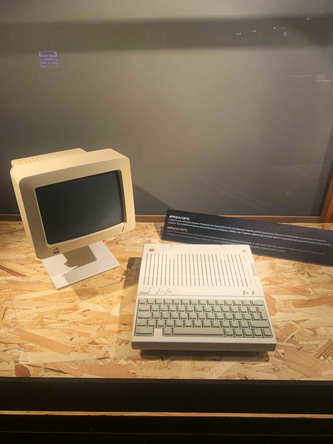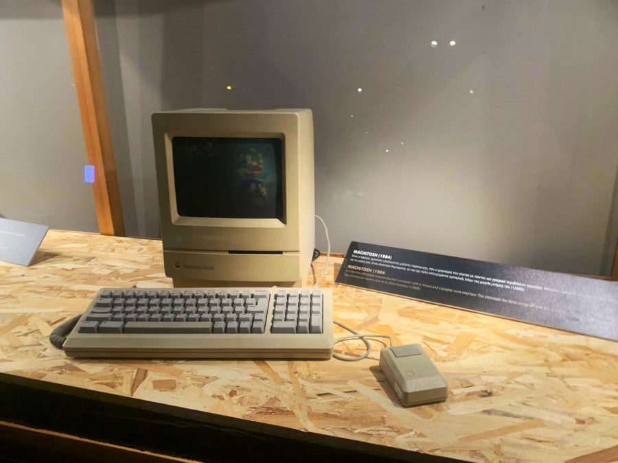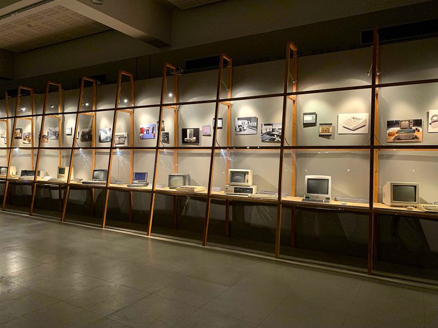Στο βάθος έχουν παραταχθεί αυθεντικοί κλασικοί υπολογιστές από τις δεκαετίες του ‘70 και του ‘80, όπως ο OSBORNE 1 (1981) που είναι ο πρώτος εμπορικά επιτυχημένος φορητός υπολογιστής, ο MACINTOSH (1984) ο πρώτος προσιτός υπολογιστής μαζικής παραγωγής που ο χειρισμός του γινόταν με ποντίκι και γραφικό περιβάλλον εργασίας και ο COMMODORE 64 (1982) ένας οικιακός υπολογιστής που καταγράφεται στο βιβλίο Guinness ως το μοντέλο με τις μεγαλύτερες πωλήσεις όλων των εποχών.