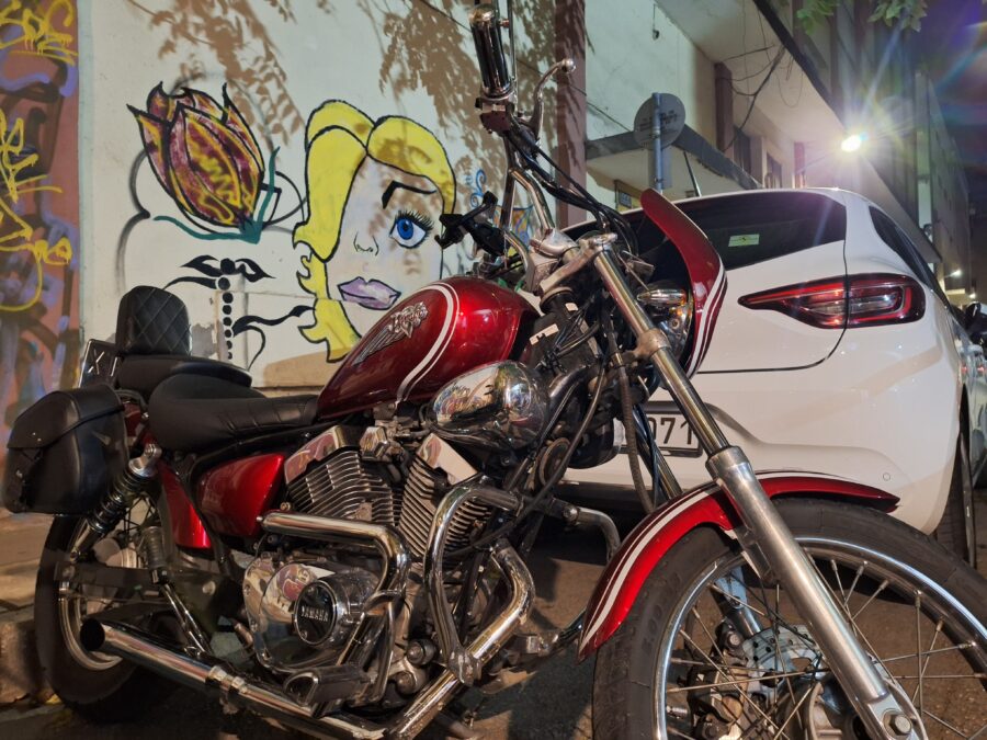 Ενώ κάπως έτσι εξελίχθηκε και η σχέση του Γιώργου από τη Σύρο με τις μηχανές. «Ο πατέρας μου είχε από πάντα μηχανή και αποφάσισε να πάρει μια Chopper. Με πήγαινε βόλτες και μου άρεσε. Από μικρός ήθελα όταν μεγαλώσω, να βγάλω δίπλωμα και να οδηγήσω τη μηχανή του μπαμπά. Εμένα κανένας φίλος μου δεν είχε τέτοια μηχανή. Στο νησί είναι εντελώς διαφορετικά», σημειώνει.