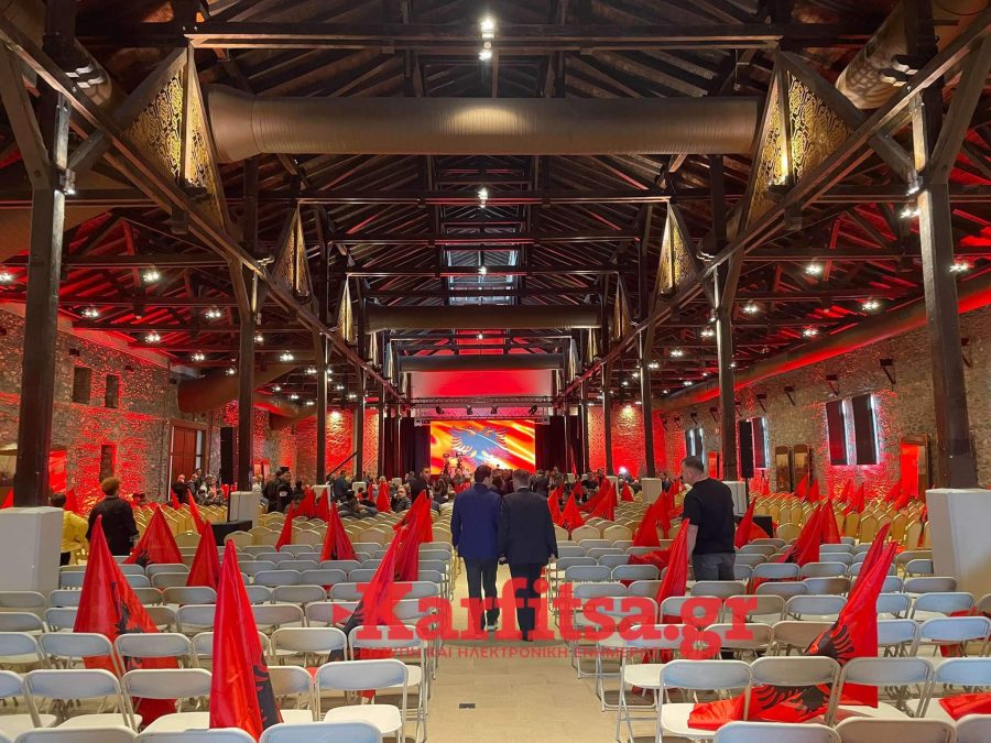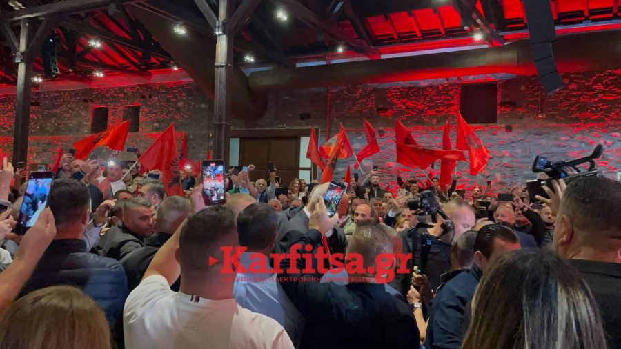 Στην είσοδο γινόταν έλεγχος από αστυνομικούς σε όσους κατέφθαναν στο ξενοδοχείο και στη συνέχεια περνούσαν στην αίθουσα όπου θα γινόταν η ομιλία όπου έχουν τοποθετηθεί αλβανικές σημαίες ενώ ακούγονταν και αλβανικά τραγούδια.