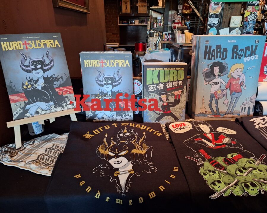 «Μια μικρή παρέα ανθρώπων που κάνουμε κόμικς, έχουμε στήσει ένα μικρό bazaar. Είναι ευκαιρία να πάρει κάποιος τα κόμικς που του λείπουν ή δώρα για την Πρωτοχρονιά. Είμαστε δέκα δημιουργοί κόμικς από όλα τα πεδία. Ο επισκέπτης μπορεί να βρει κόμικς από πολλούς κωμικούς. Έχουμε και δύο εκδοτικές, αλλά και merch, μπλουζάκια, κονκάρδες», επισημαίνει ο Σταύρος Κιουτσιούκης, δημιουργός κόμικς που συμμετέχει στο bazaar.