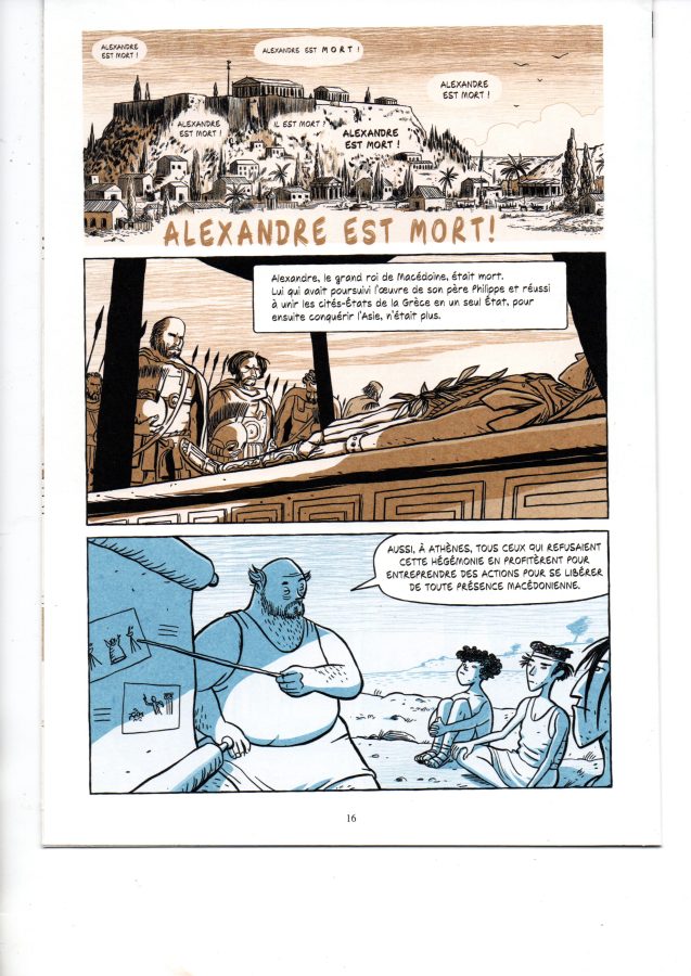Για τη σχεδίαση ο ίδιος χρειάστηκε επίσης να κάνει έρευνα, ενώ μάλιστα κάποιες σελίδες του κόμικ απαιτούσαν ξεχωριστά να ψάξει, να ρωτήσει αρχαιολόγους, να καταφύγει στο ίντερνετ. Παρότι για το θέμα της αρχιτεκτονικής και των ενδυμάτων είχε μια καθαρή εικόνα, εντούτοις όσον αφορά τα μακεδονικά κτίρια χρειάστηκε να αυτοσχεδιάσει. «Επειδή τα κτίριά τους ήταν με πωρόλιθο, τα πιο πολλά από αυτά χάθηκαν και έχουμε μόνο τα μαρμάρινα των Αθηνών», σημειώνει.