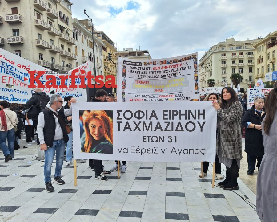 Για την ειρήνη που δεν είναι πια εδώ, για την Αγάπη, για την Ελισάβετ, για τον Δημήτρη, για την Ιφιγένεια. Για όλους τους 57 που σαν σήμερα, πριν τρία χρόνια, έφυγαν τραγικά από τη ζωή στις ματωμένες ράγες των Τεμπών. Για όσους έφυγαν και για όσους έμειναν να αγωνίζονται. Στο κέντρο της Θεσσαλονίκης, μια λαοθάλασσα φωνάζει “δεν ξεχνάμε, δε συγχωρούμε”, στην κινητοποίηση για την επέτειο των τριών χρόνων της τραγωδίας.