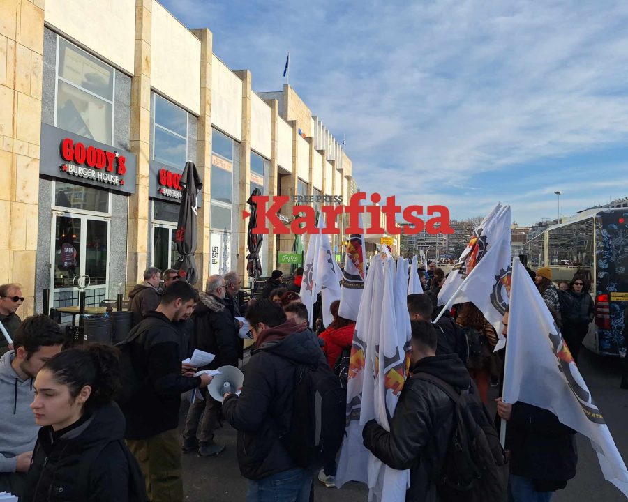 Το παρών στη διαμαρτυρία έδωσε και ο βουλευτής Β’ Θεσσαλονίκης με το ΚΚΕ, Λεωνίδας Στολτίδης, ο οποίος εξέφρασε επίσης την αλληλεγγύη του στους εργαζόμενους που απολύθηκαν.