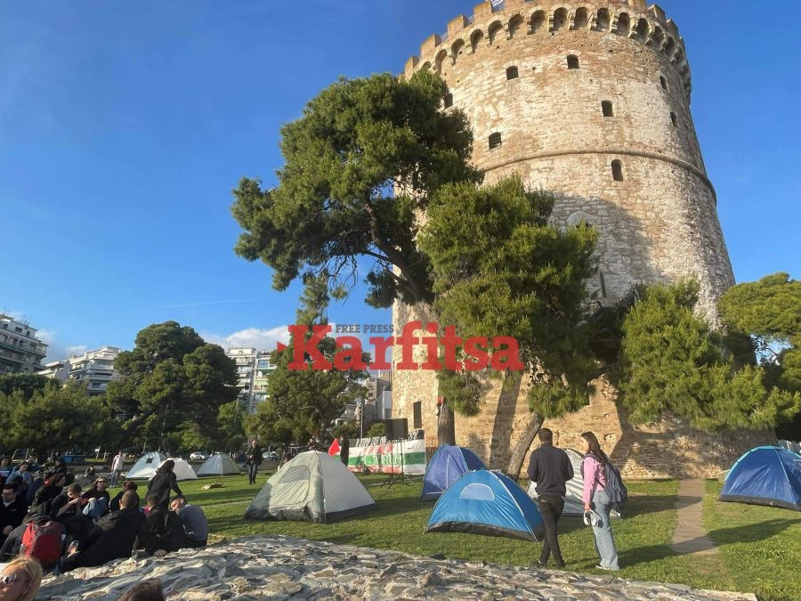 Θεσσαλονίκη: Διαμαρτυρία για την Παλαιστίνη μπροστά στον Λευκό Πύργο – Έστησαν σκηνές για να διανυκτερεύσουν οι φοιτητές (ΦΩΤΟ + Video)