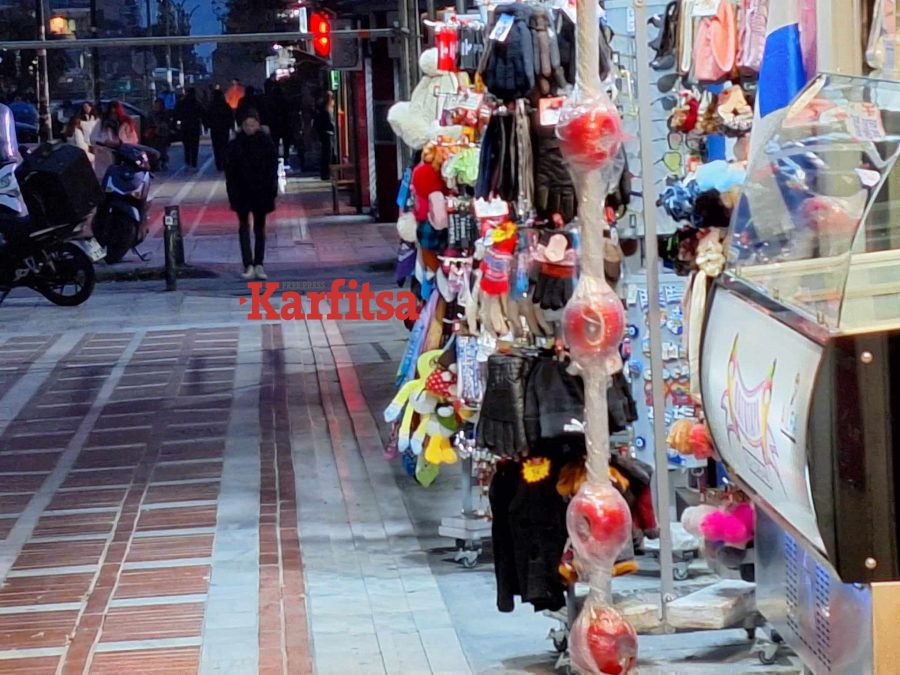 Όπως βλέπετε και στις φωτογραφίες της Karfitsa από αυτοψία στη Γούναρη, πάνω αλλά και δεξιά και αριστερά του οδηγού τυφλών βρίσκονται stands με εμπορεύματα ενώ στην οδό Αιμιλιανού Γρεβενών εντοπίσαμε σταθμευμένη μηχανή.