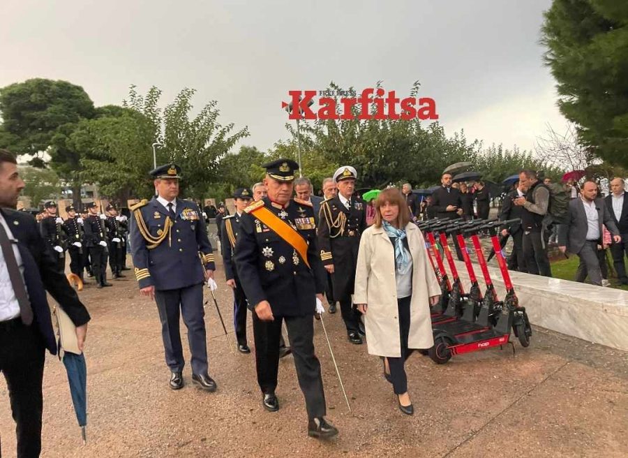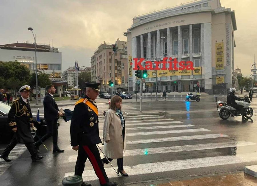 Με την Πρόεδρο της Δημοκρατίας, Κατερίνα Σακελαροπούλου και υπό βροχή, πραγματοποιήθηκε σήμερα το πρωί η πανηγυρική τελετή έπαρσης της σημαίας στο Λευκό Πύργο στο πλαίσιο των εορταστικών εκδηλώσεων της εθνικής επετείου της 26ης Οκτωβρίου 1912.