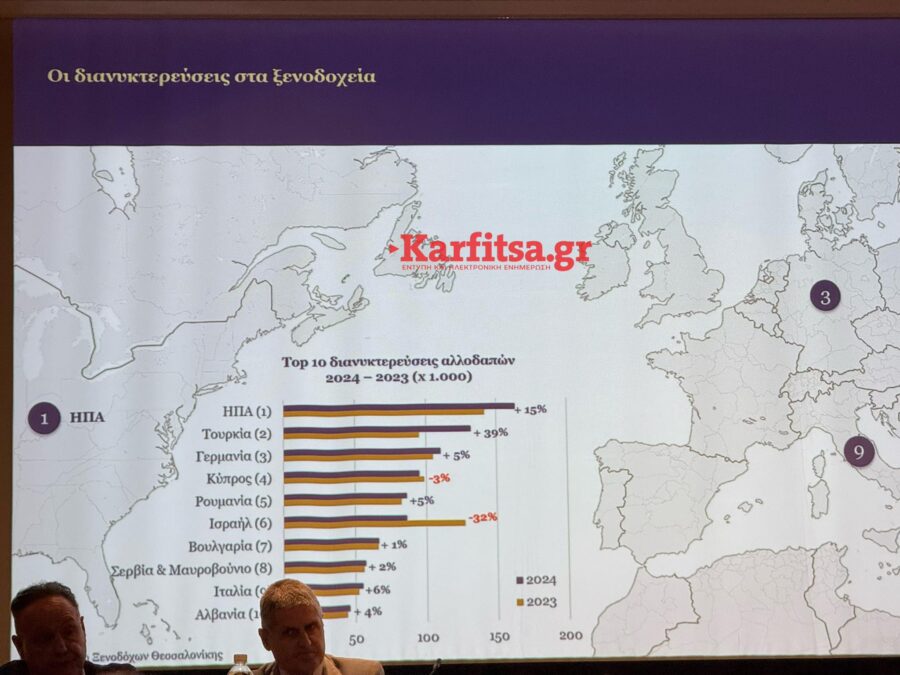 Σύμφωνα με τα αποτελέσματα της έρευνας, οι περισσότεροι επισκέπτες στη Θεσσαλονίκη προέρχονται από τις ΗΠΑ, την Τουρκία και την Γερμανία ενώ μετά ακολουθούν οι Βαλκανικές χώρες, η Κεντρική Ευρώπη και το Ισραήλ με -32% πτώση λόγω του πολέμου με την Γάζα.