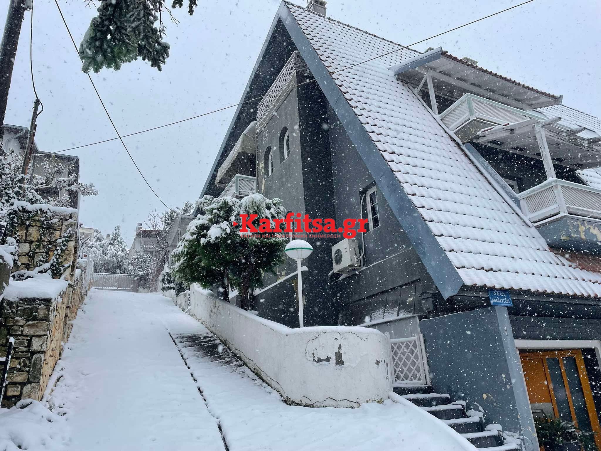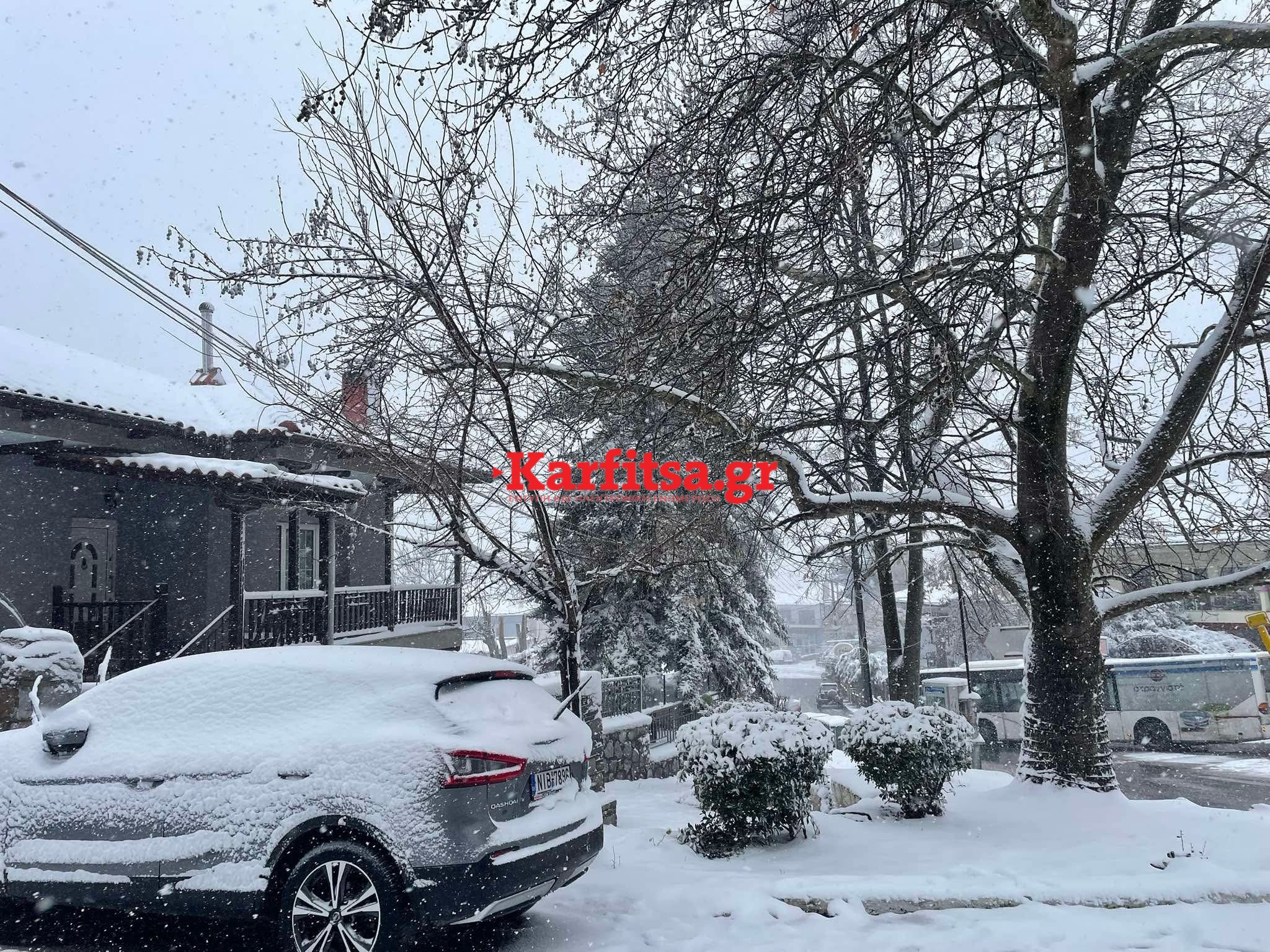 Στα λευκά ντύθηκε ο Χορτιάτης καθώς από χθες το βράδυ πέφτει πυκνό χιόνι και το κρύο είναι τσουχτερό.
