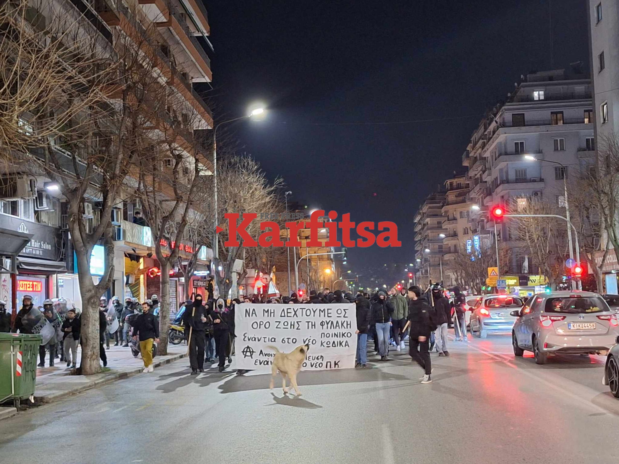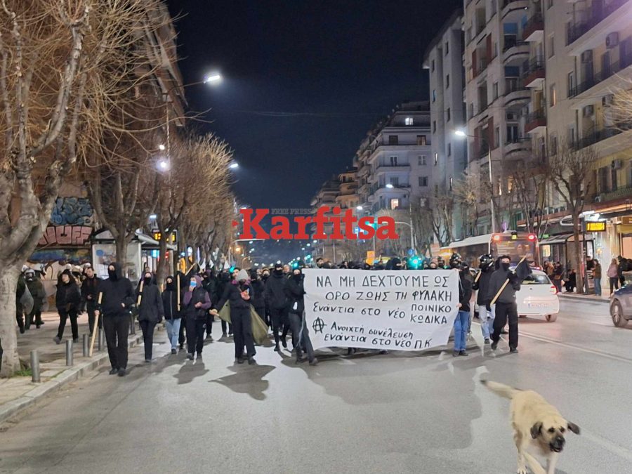 Κρατώντας πανό και φωνάζοντας συνθήματα, ξεκίνησαν με συγκέντρωση στην Καμάρα μετά τις 18.00 και αυτή την ώρα κινούνται σε πορεία. «Οι επερχόμενες τροποποιήσεις στον ποινικό κώδικα, σε συνέχεια όσων έχουν συμβεί στους προηγούμενους αλλά και τις αλλαγές που έχουν γίνει στον σωφρονιστικό κώδικα, έρχονται να προσθέσουν εργαλεία σε μια μοχθηρή πολιτική ατζέντα που αποσκοπεί στην περαιτέρω καταστολή, τον εκφοβισμό, τον κοινωνικό έλεγχο περιθωριοποιημένων, αγωνιζόμενων και μη προνομιούχων υποκειμένων», αναφέρεται σε σχετική ανακοίνωση.
